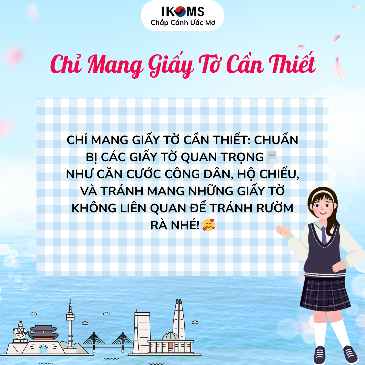 Mang đầy đủ các giấy tờ cần thiết như hộ chiếu, căn cước, hồ sơ học tập… và sắp xếp ngăn nắp. Việc chuẩn bị chu đáo sẽ giúp buổi phỏng vấn diễn ra nhanh chóng, thuận lợi hơn.