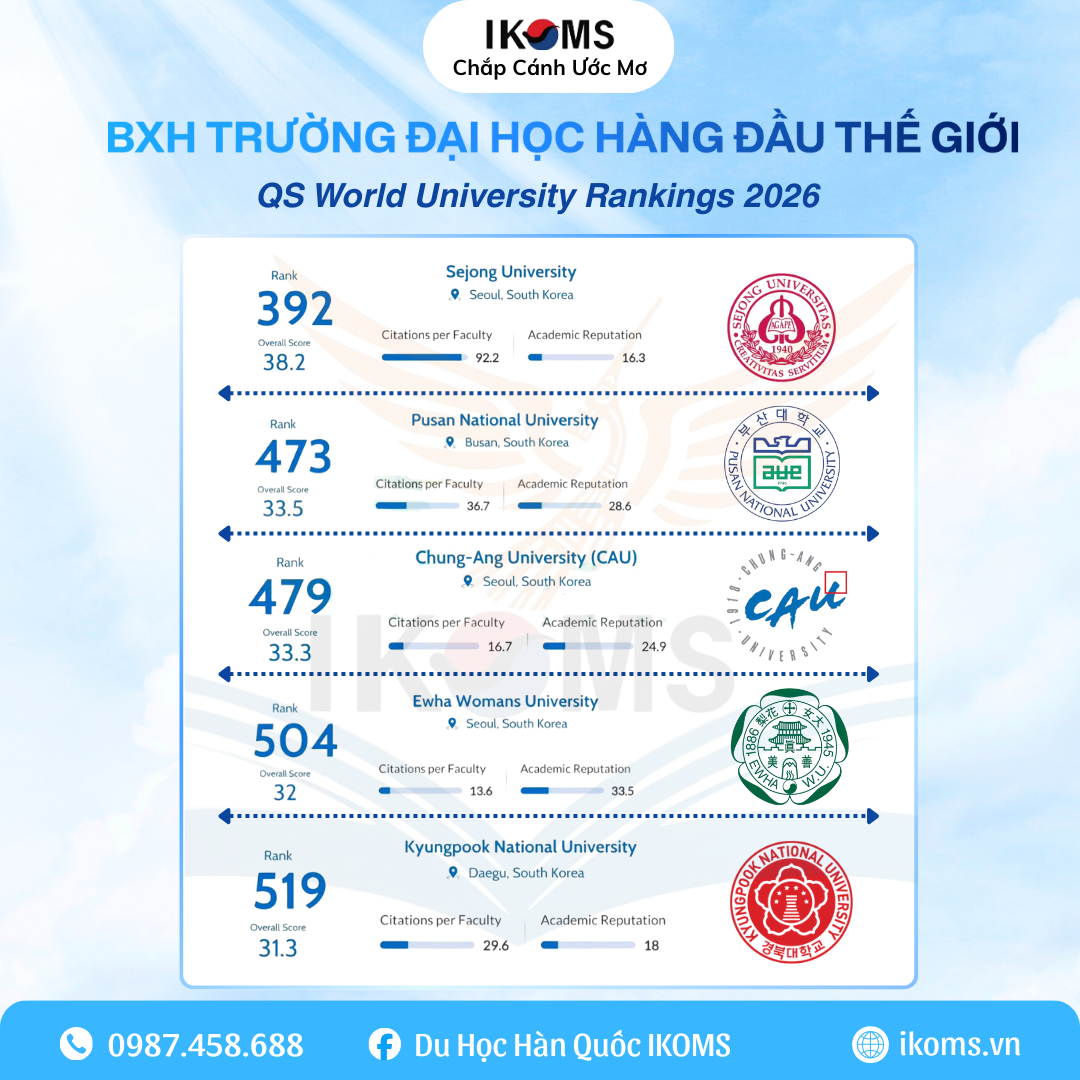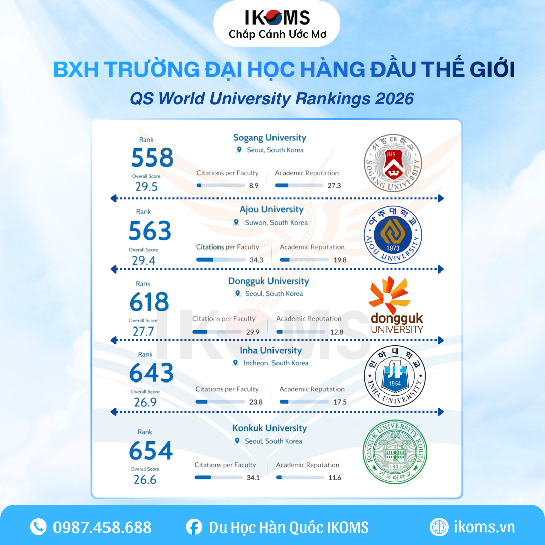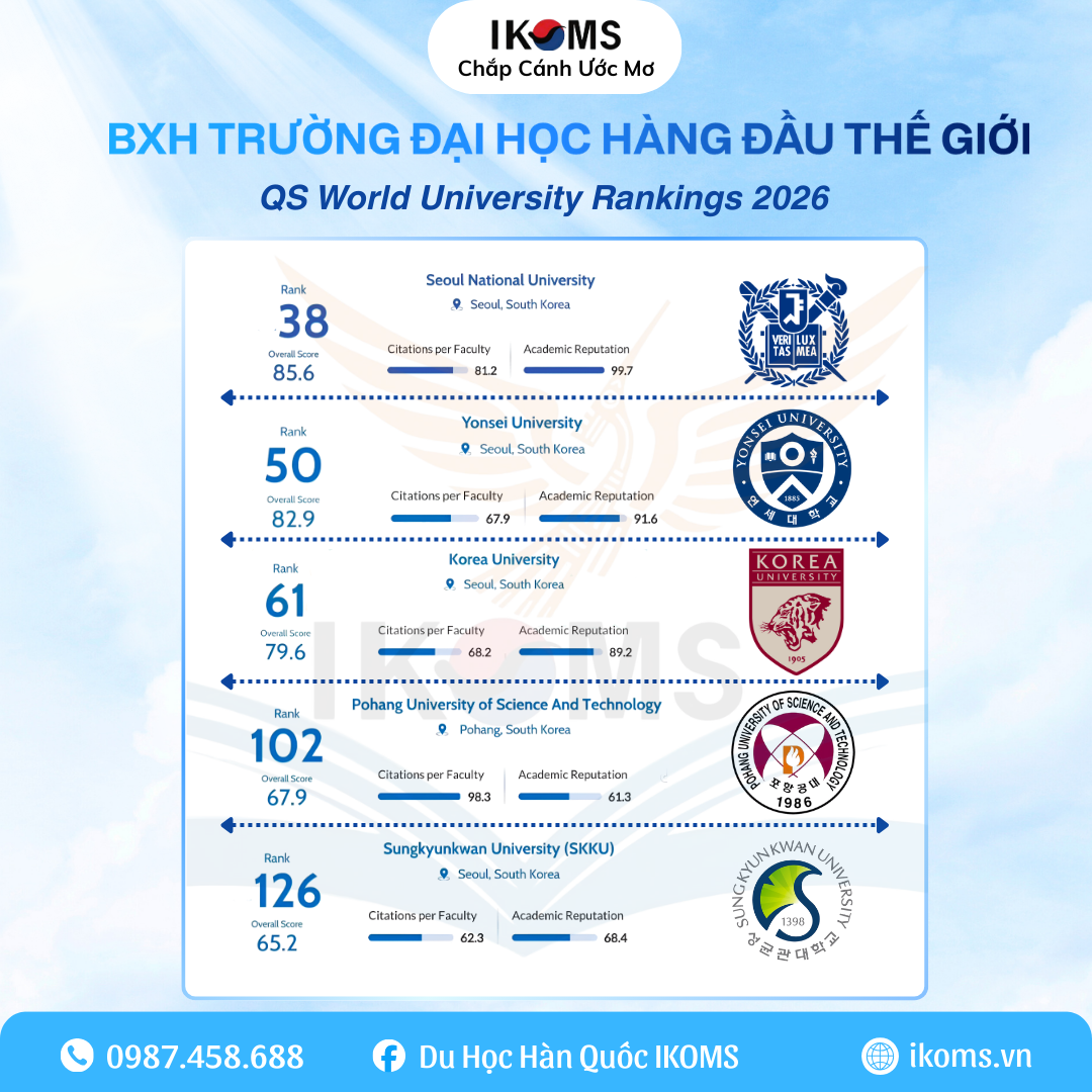 Liên hệ IKOMS ngay hôm nay để được tư vấn chọn trường theo BXH QS 2026 một cách thông minh và hiệu quả nhất cho hành trình du học Hàn Quốc của bạn.