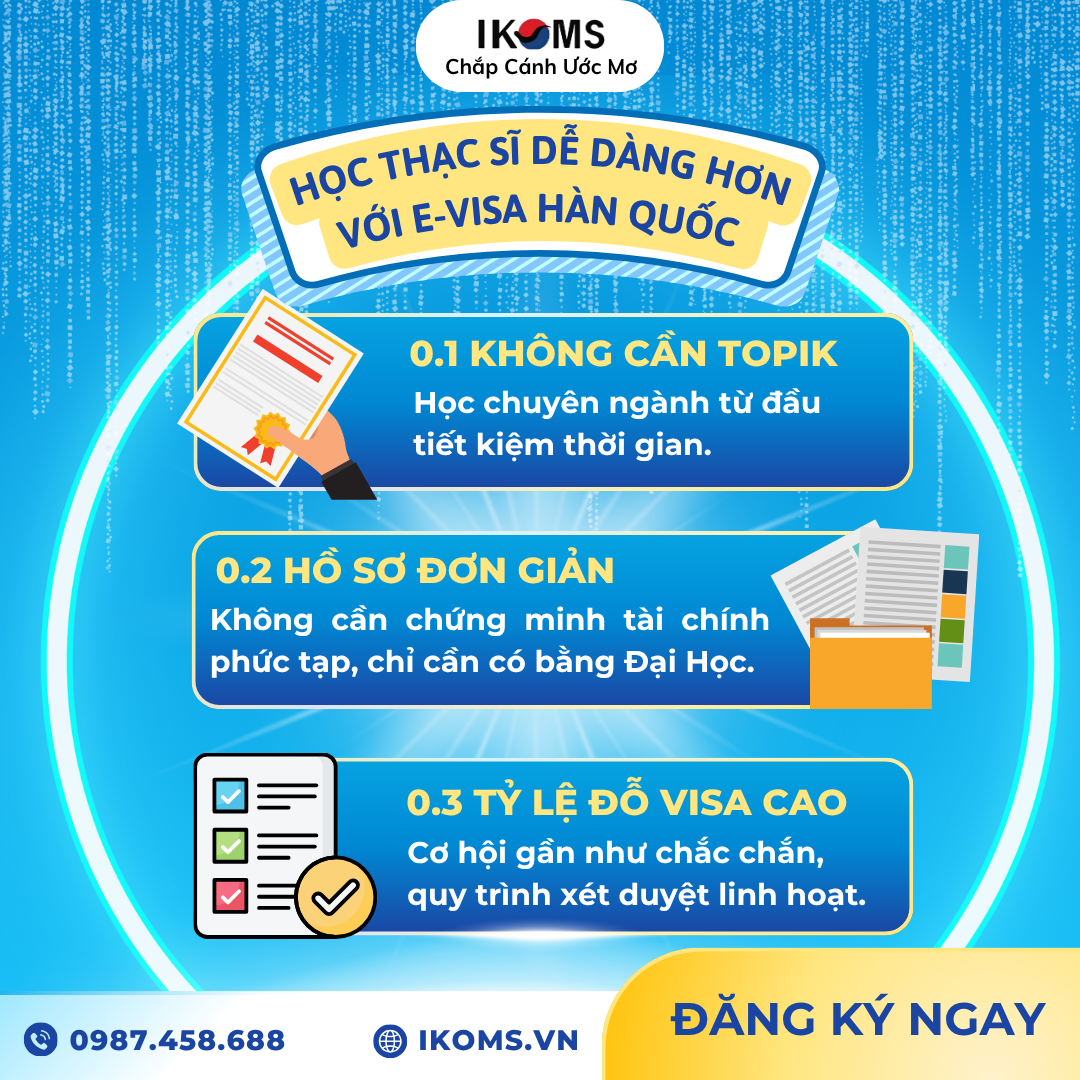 Liên hệ ngay IKOMS để được tư vấn miễn phí về chương trình Evisa Thạc sĩ Hàn Quốc và bắt đầu hành trình chạm tới giấc mơ học tập quốc tế của bạn ngay hôm nay!