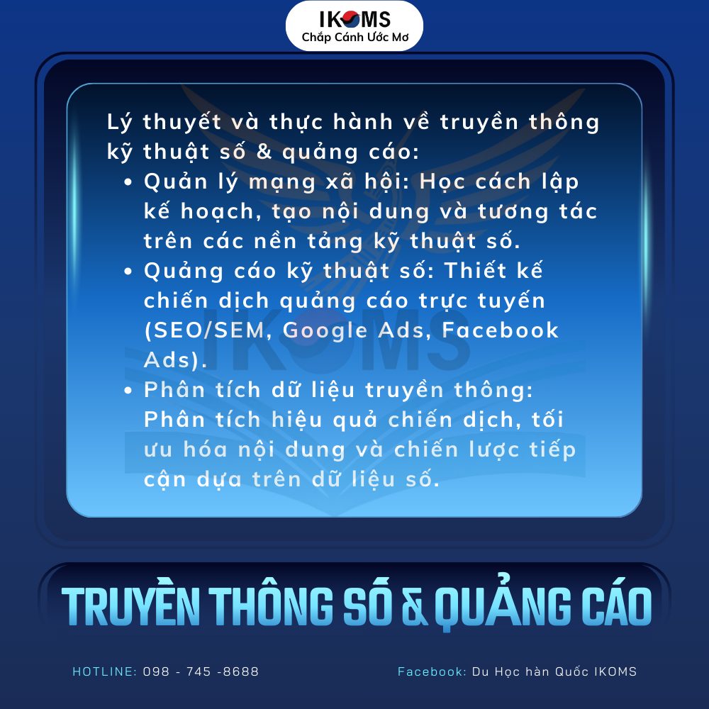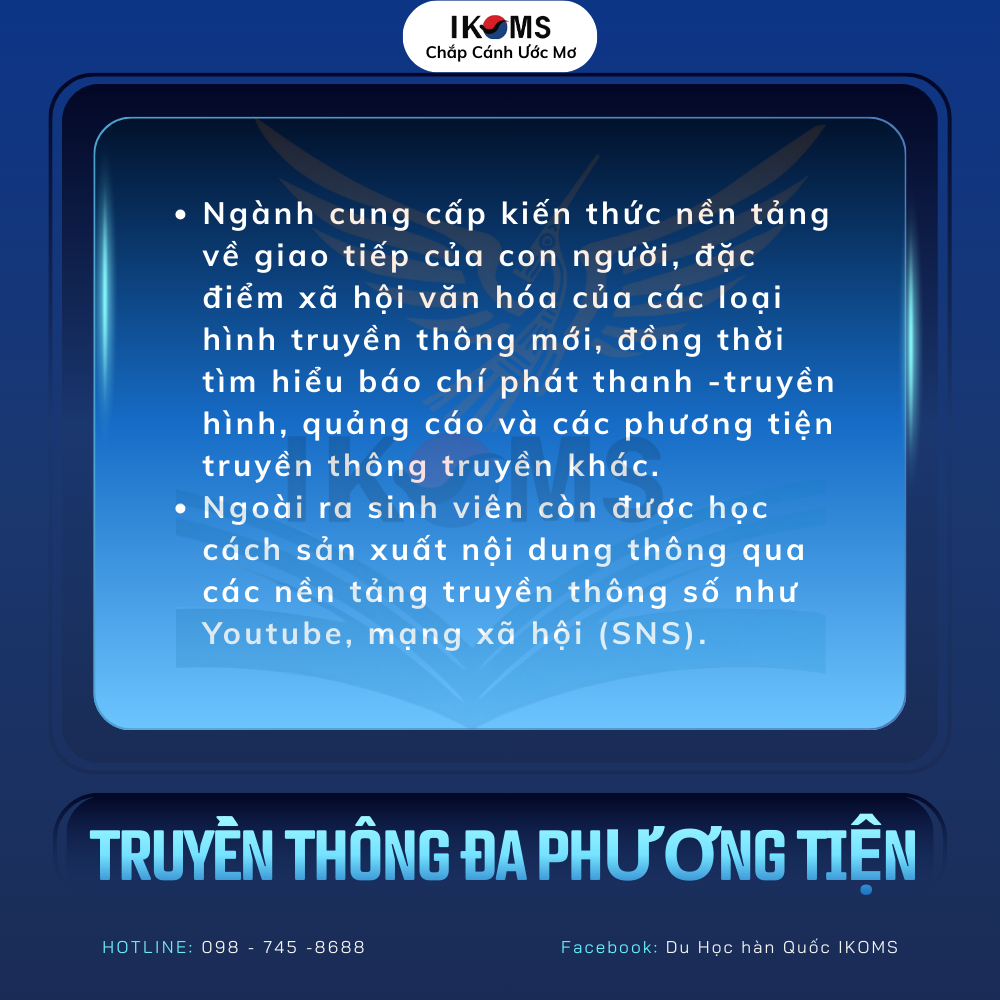 Nếu bạn đang quan tâm đến ngành truyền thông tại Hàn Quốc, hãy liên hệ IKOMS để được tư vấn chi tiết lộ trình học tập và cơ hội nghề nghiệp phù hợp.