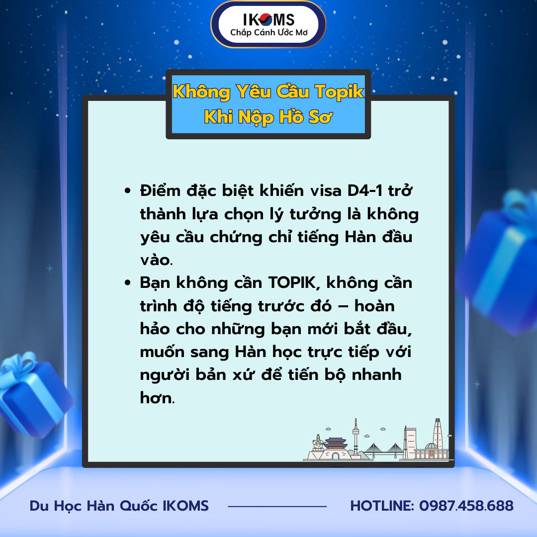 Đối với những bạn đang chuẩn bị những bước đầu tiên trên hành trình du học Hàn Quốc nhưng còn băn khoăn về năng lực tiếng Hàn, hồ sơ, tài chính hay định hướng học tập, Visa D4-1 chính là lựa chọn phù hợp và an toàn nhất để khởi đầu.