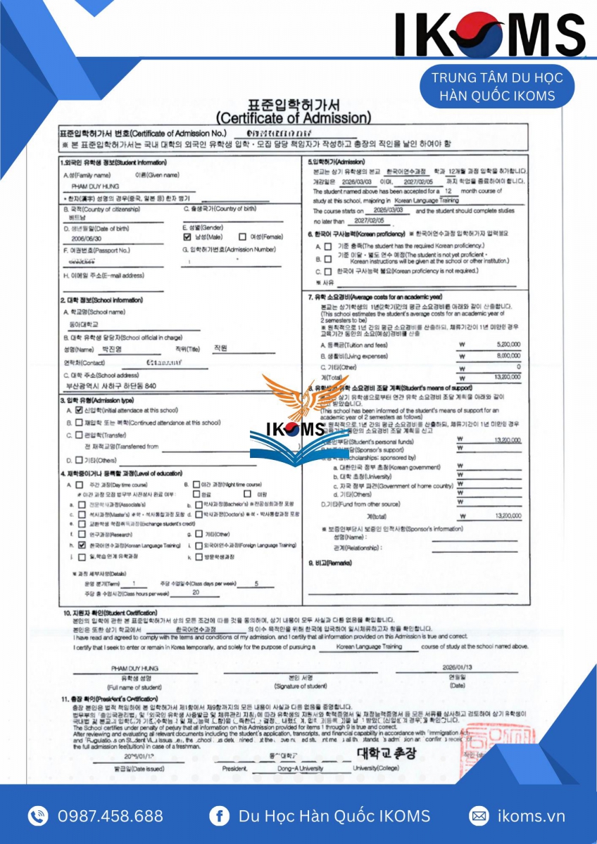 IKOMS vô cùng tự hào và hân hoan chúc mừng 03 học viên ưu tú đã chính thức nhận được thư mời nhập học từ các trường đại học danh tiếng tại Hàn Quốc. Đây là thành quả xứng đáng cho quá trình nỗ lực học tập, chuẩn bị hồ sơ nghiêm túc, cũng như sự đồng hành sát sao của đội ngũ tư vấn IKOMS trong suốt hành trình du học.