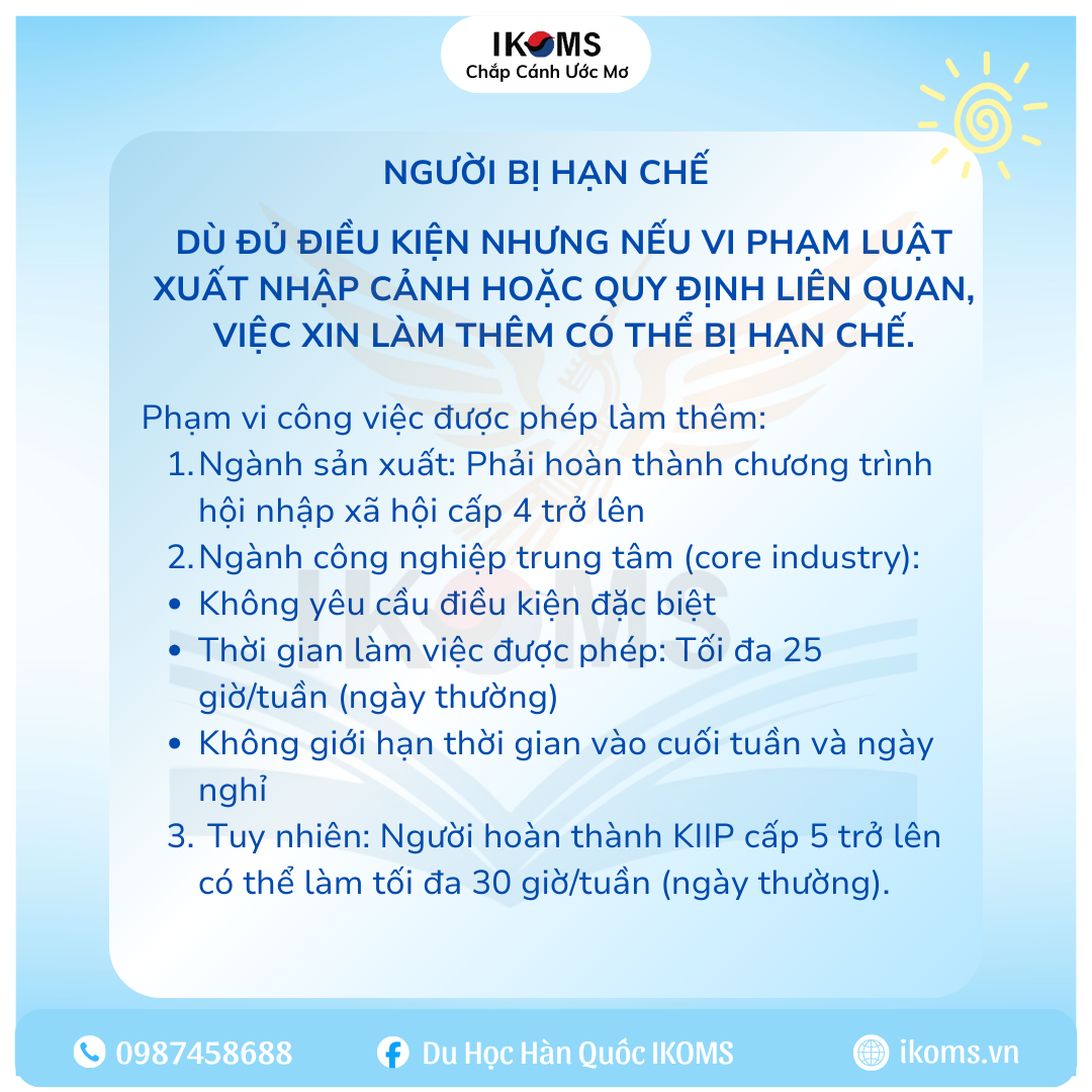 IKOMS luôn cập nhật nhanh chóng những thông tin mới nhất liên quan đến chính sách du học, visa và việc làm tại Hàn Quốc, nhằm hỗ trợ học viên có sự chuẩn bị tốt nhất trong suốt hành trình học tập và phát triển.